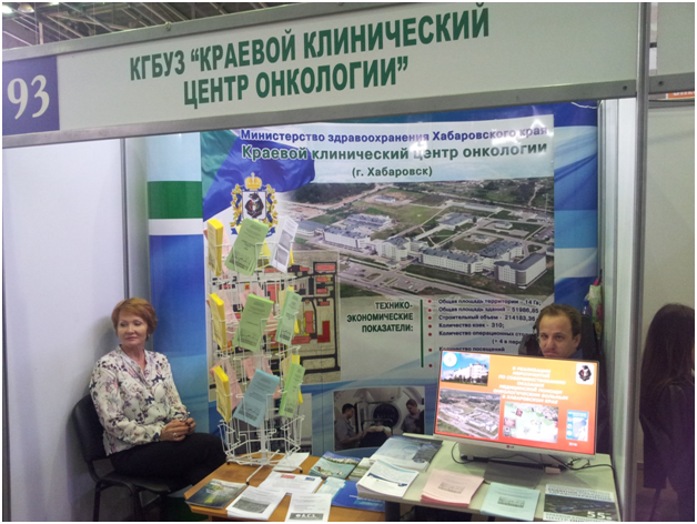 Центральным звеном реализации мероприятий по улучшению качества оказания специализированной онкологической помощи населению края является КГБУЗ «Краевой клинический центр онкологии», многопрофильное лечебное учреждение, оказывающее специализированную и высокотехнологичную медицинскую помощь населению Хабаровского края, и всего ДФО. Лечебно-диагностический процесс в КГБУЗ «ККЦО» осуществляется в отделениях хирургического и терапевтического профиля круглосуточного стационара на 306 коек и клинико-диагностическом центре (консультативно-диагностической поликлинике на 219 посещений в смену и диагностических отделениях). Общая численность персонала КГБУЗ «ККЦО» более 650 человек, в их числе 350 медицинских работников, из которых 140 врачей. Среди сотрудников три доктора медицинских наук, 8 кандидатов медицинских наук, 48 врачей высшей категории, 13 врачей первой категории, один заслуженный врач РФ, 4 заслуженных работника здравоохранения. В составе комплекса 19 зданий, площадь занимаемой территории 15 гектаров. Лечение ежегодно получает более 6000 человек и 5 коек дневного стационара радиологического отделения, лечение ежегодно получает более 55 человек. Участие Хабаровского края в мероприятиях приоритетного национального проекта «Здоровье» по совершенствованию медицинской помощи онкобольным позволило существенно обновить материально-техническую базу онкологической службы, внедрить инновационные диагностические и лечебные технологии, обеспечить больных комплексным лечением (хирургическое, радиологическое, лекарственное). В Краевом клиническом центре онкологии повышается сложность видео эндоскопических операций, активно развивается ядерная медицина, достигая по основным методикам мирового уровня, что явилось предметом демонстрации на выставке.